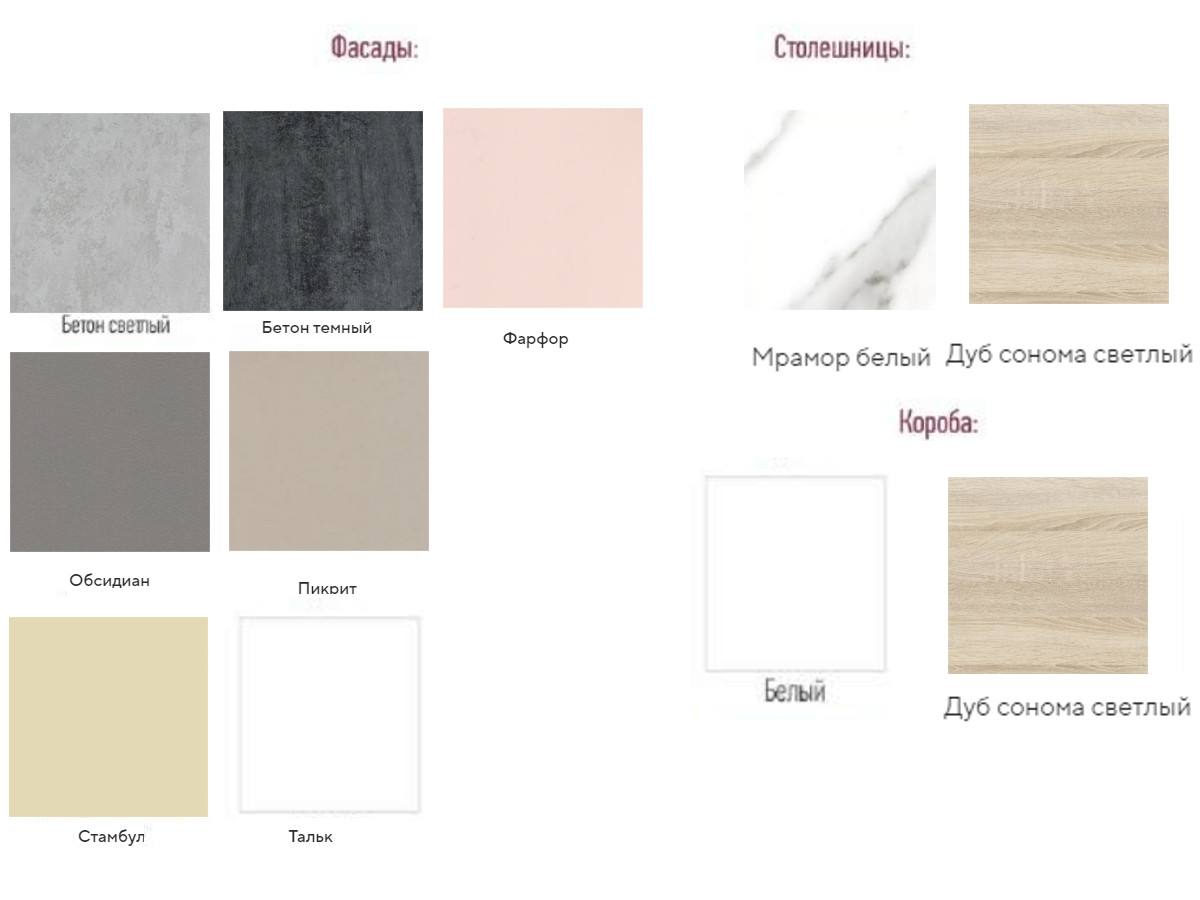 Кухонная мойка, стеновая панель, посудосушитель, планки для столешницы в комплект не входят.