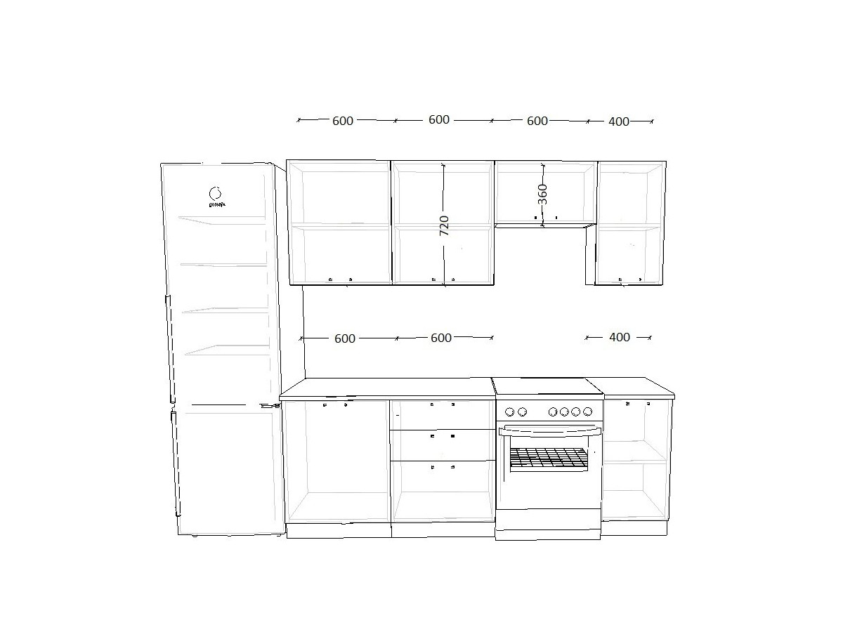- высота верхних шкафов 720 мм