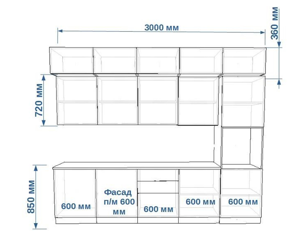 Кухонная мойка, стеновая панель, посудосушитель, планки для столешницы в комплект не входят.