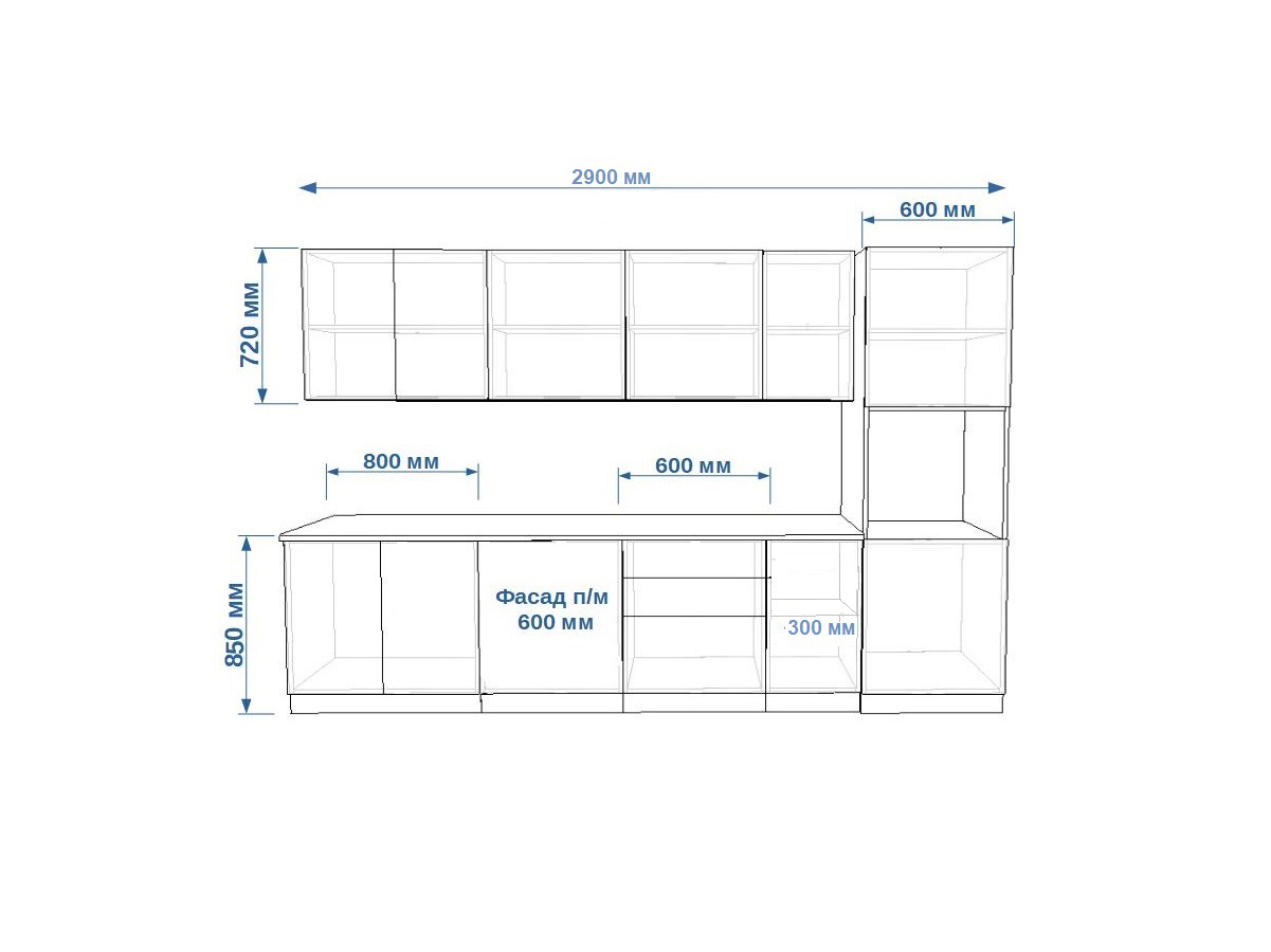 - высота верхних шкафов 720 мм