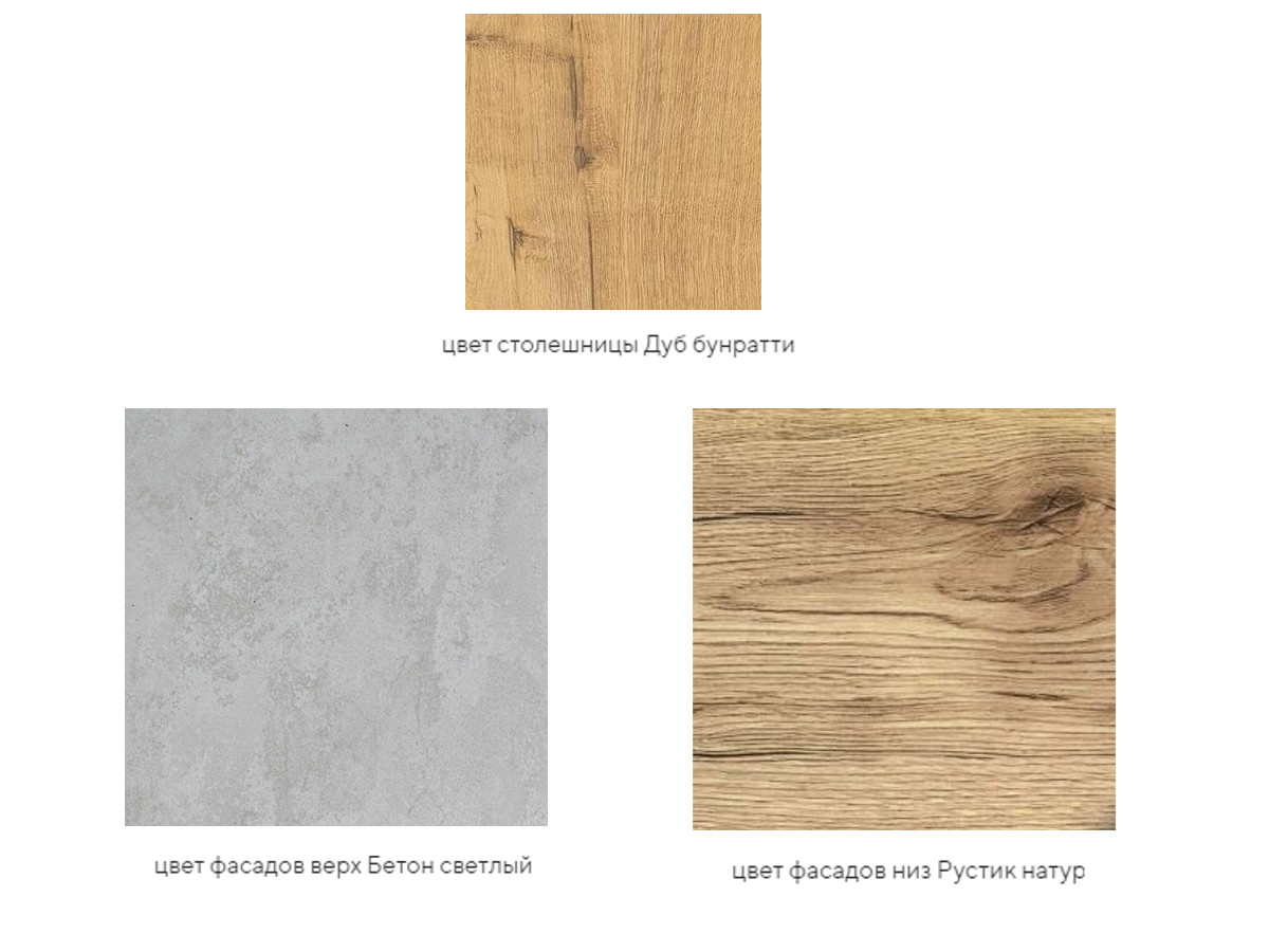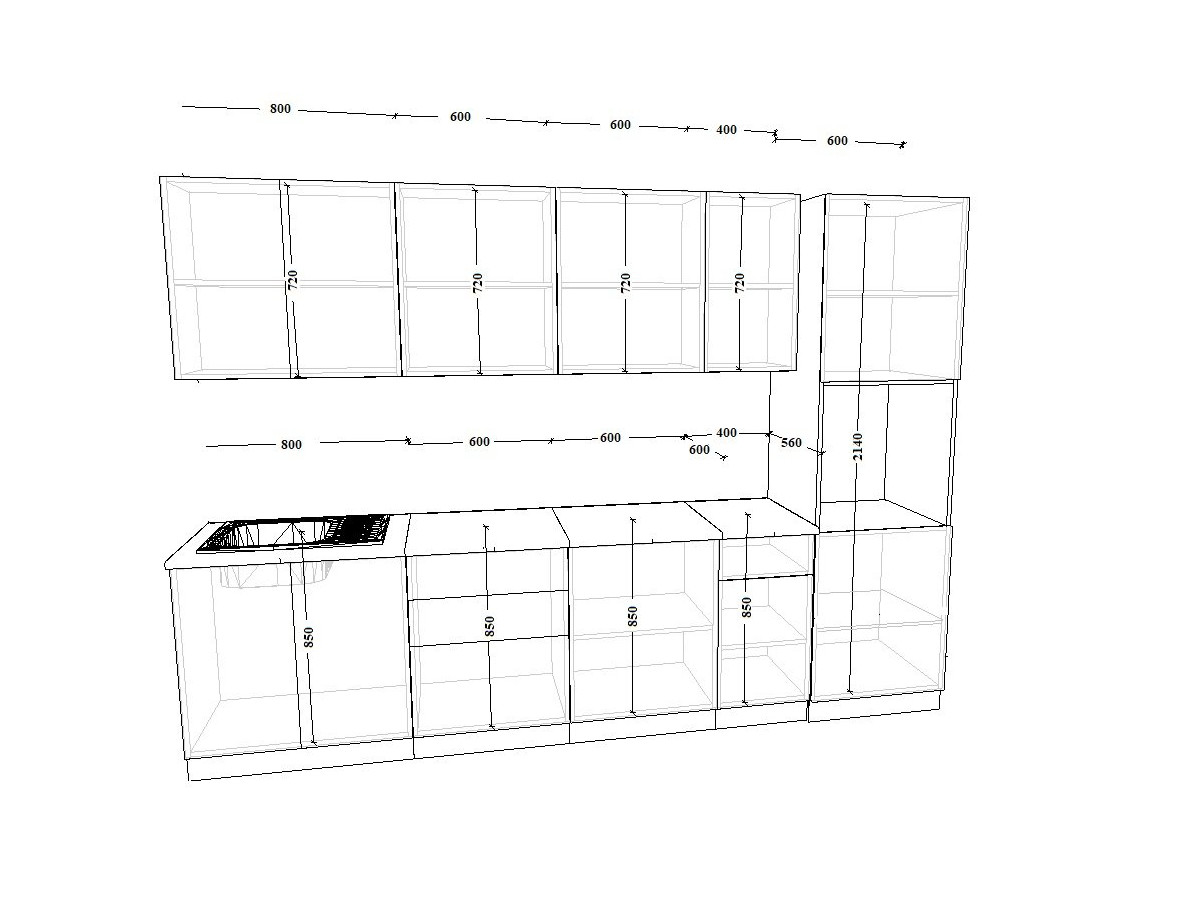 Кухонная мойка, стеновая панель, посудосушитель, планки для столешницы в комплект не входят.