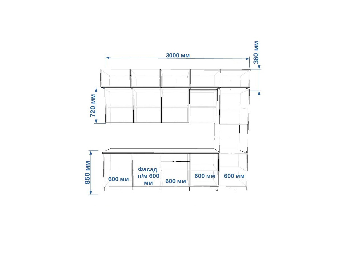 Кухонная мойка, стеновая панель, посудосушитель, планки для столешницы в комплект не входят.