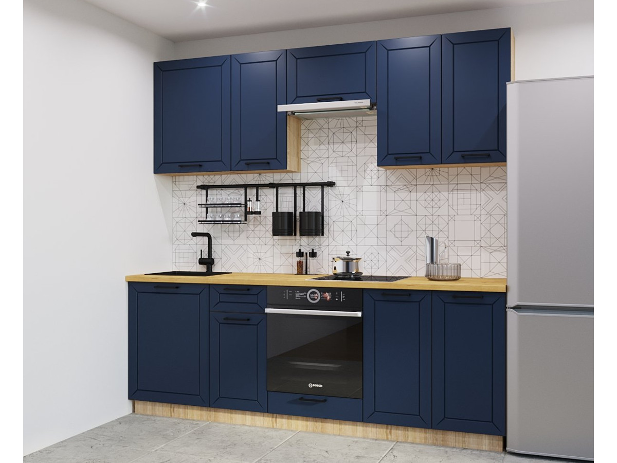 Кухонная мойка, стеновая панель, посудосушитель, планки для столешницы в комплект не входят.