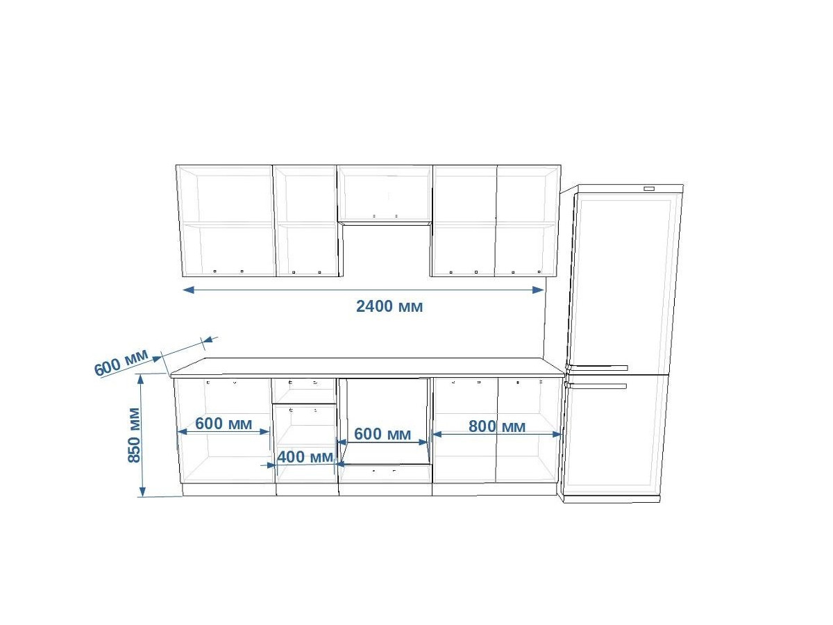 - высота верхних шкафов 720 мм