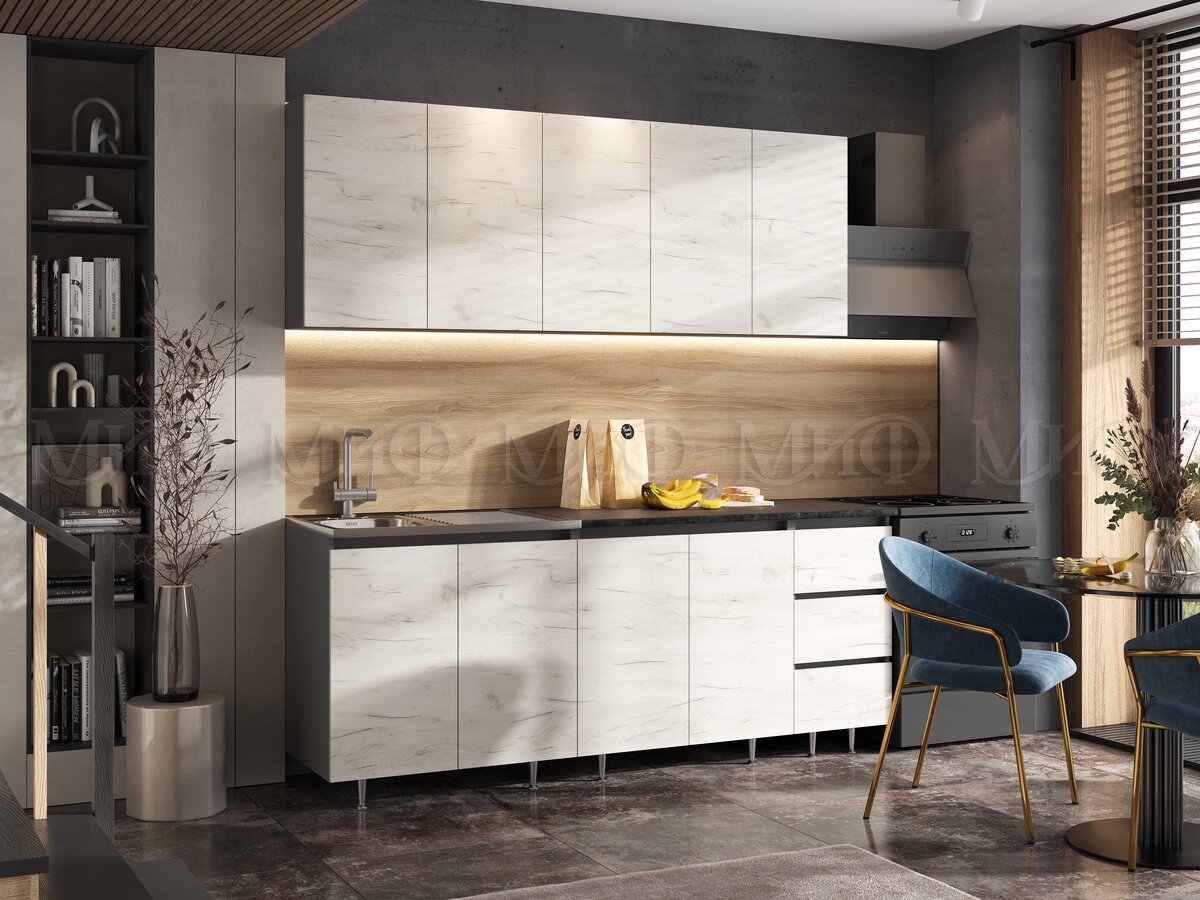 - Кухонный гарнитур Челси 2000 мм Дуб Крафт Белый/Графит