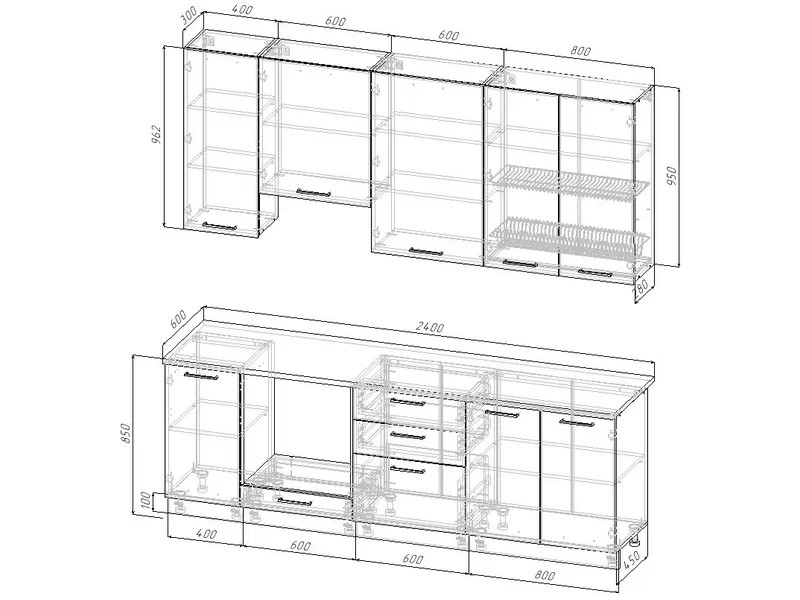Кухонный гарнитур Шампань 2400 (верх 950 мм)