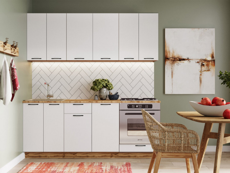 - Кухонный гарнитур Хелмер 2000 мм ЛДСП Вотан/Белый со шкафом под духовку