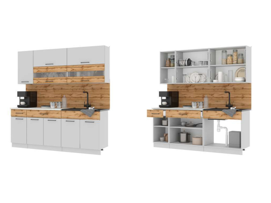 - Кухонный гарнитур Ингрид ЛДСП 2000 мм Белый-Дуб Вотан