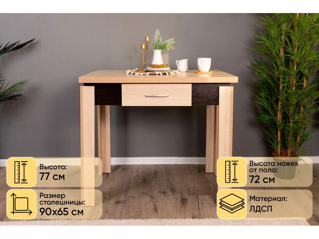 - Стол обеденный Doma раскладной с ящиком Дуб сонома/Венге