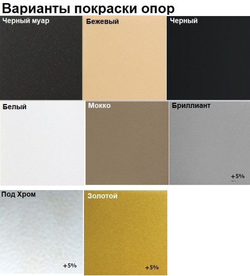 - стандарт: Черный, Черный Муар, Белый, Бежевый, Мокко