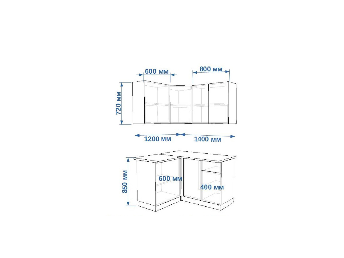 - Кухонный гарнитур арт 1 Лайн Тальк 1200х1400 мм