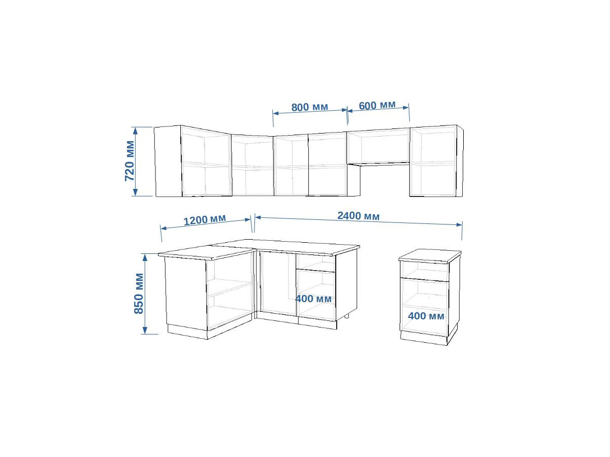 - Кухонный гарнитур арт 11 Фаска Обсидиан 1200х2400 мм