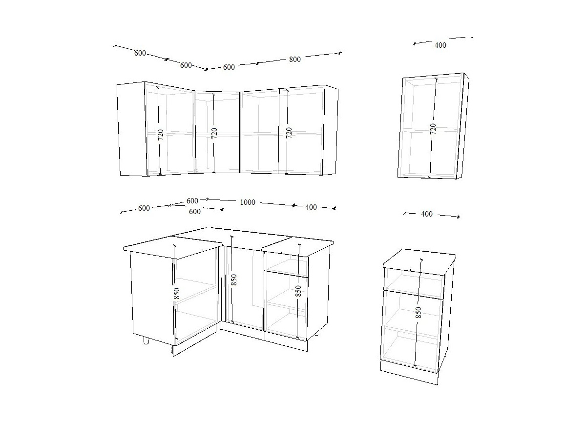- высота верхних шкафов 720 мм