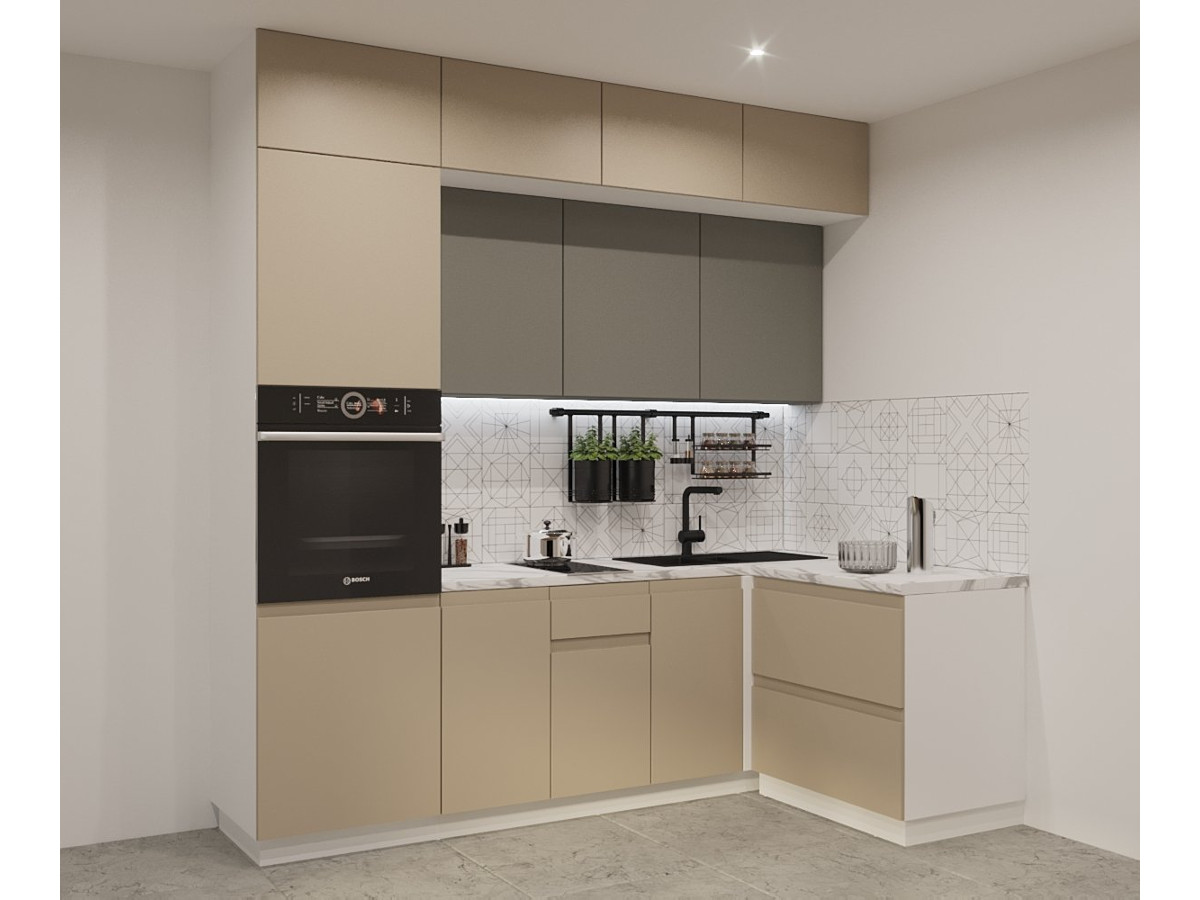 - Кухонный гарнитур арт 19 Лайн Пикрит Обсидиан 2400х1400 мм