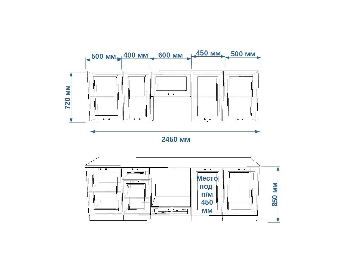 - высота верхних шкафов 720 мм