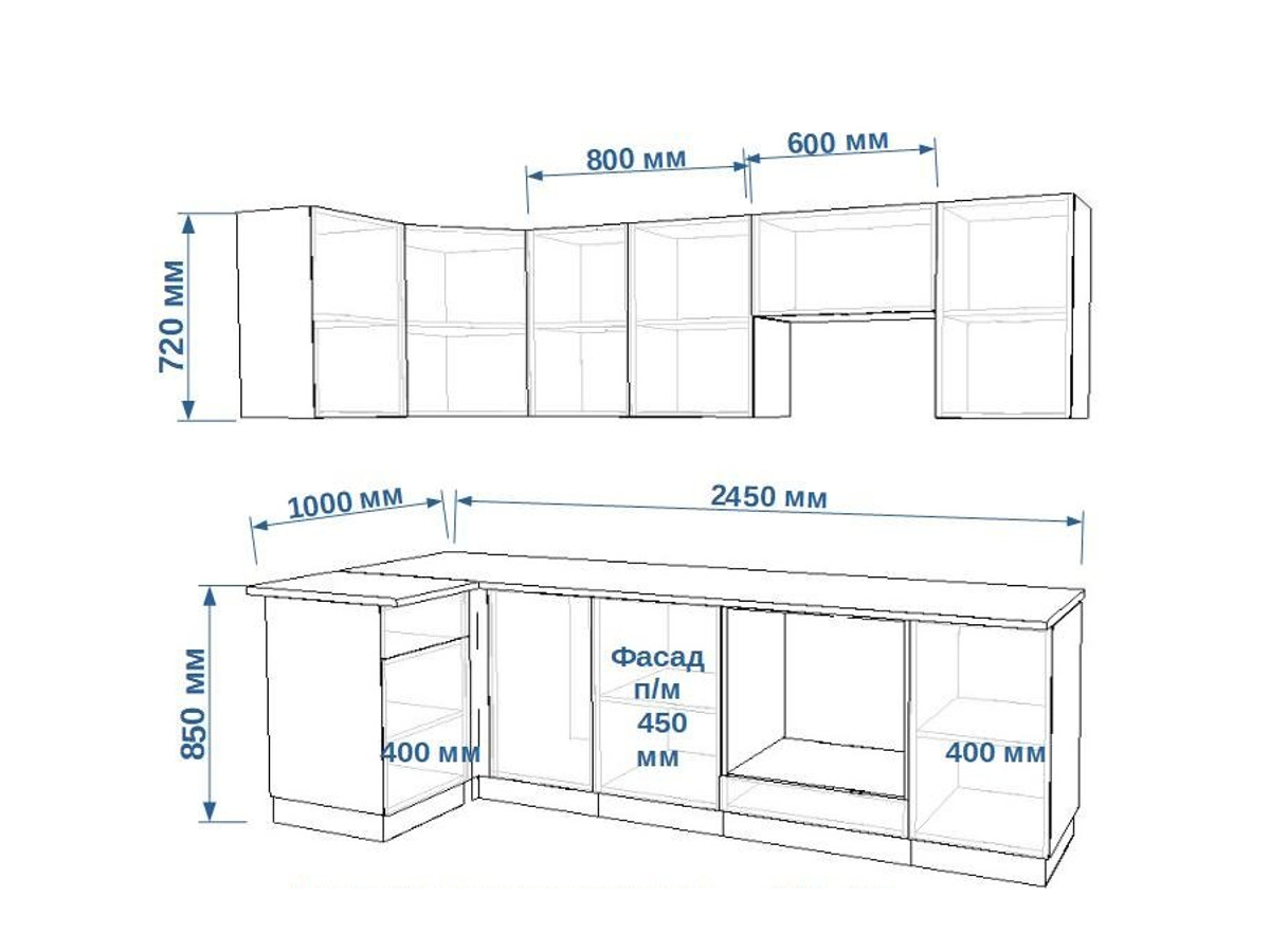 Кухонная мойка, стеновая панель, посудосушитель, планки для столешницы в комплект не входят.