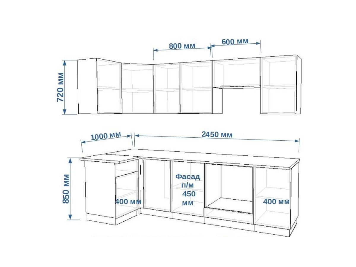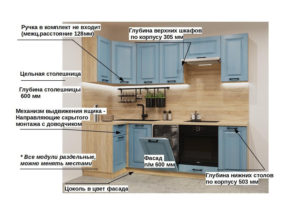 - Кухонный гарнитур арт 21 Роял Вуд Голубой Вегас 1000х2450 мм