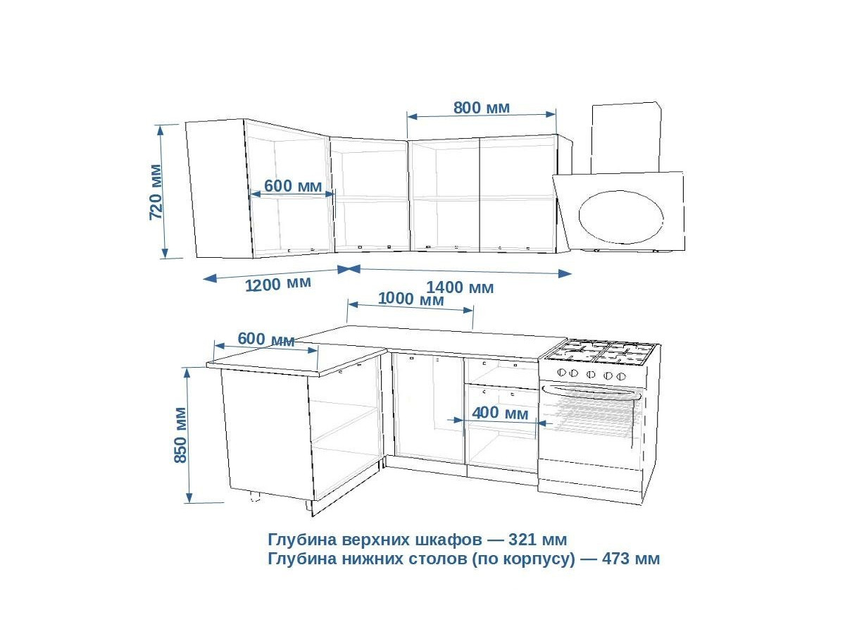 - Кухонный гарнитур арт 3 Океания Кристалл 1200х1400 мм