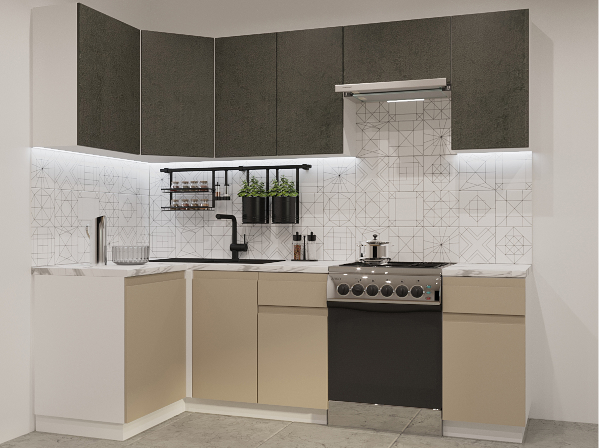 - Кухонный гарнитур арт 33 Лайн Бетон темный Пикрит 1200х2400 мм