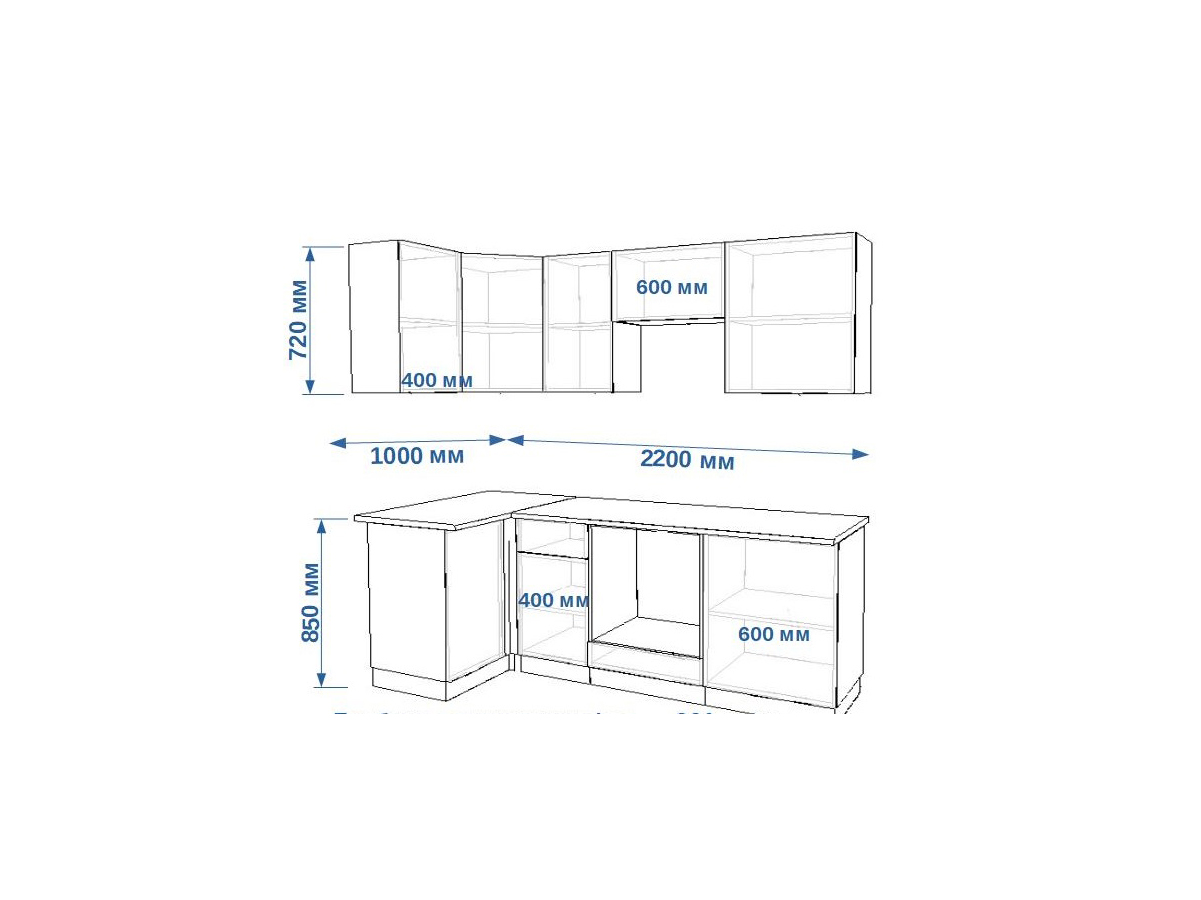 - высота верхних шкафов 720 мм