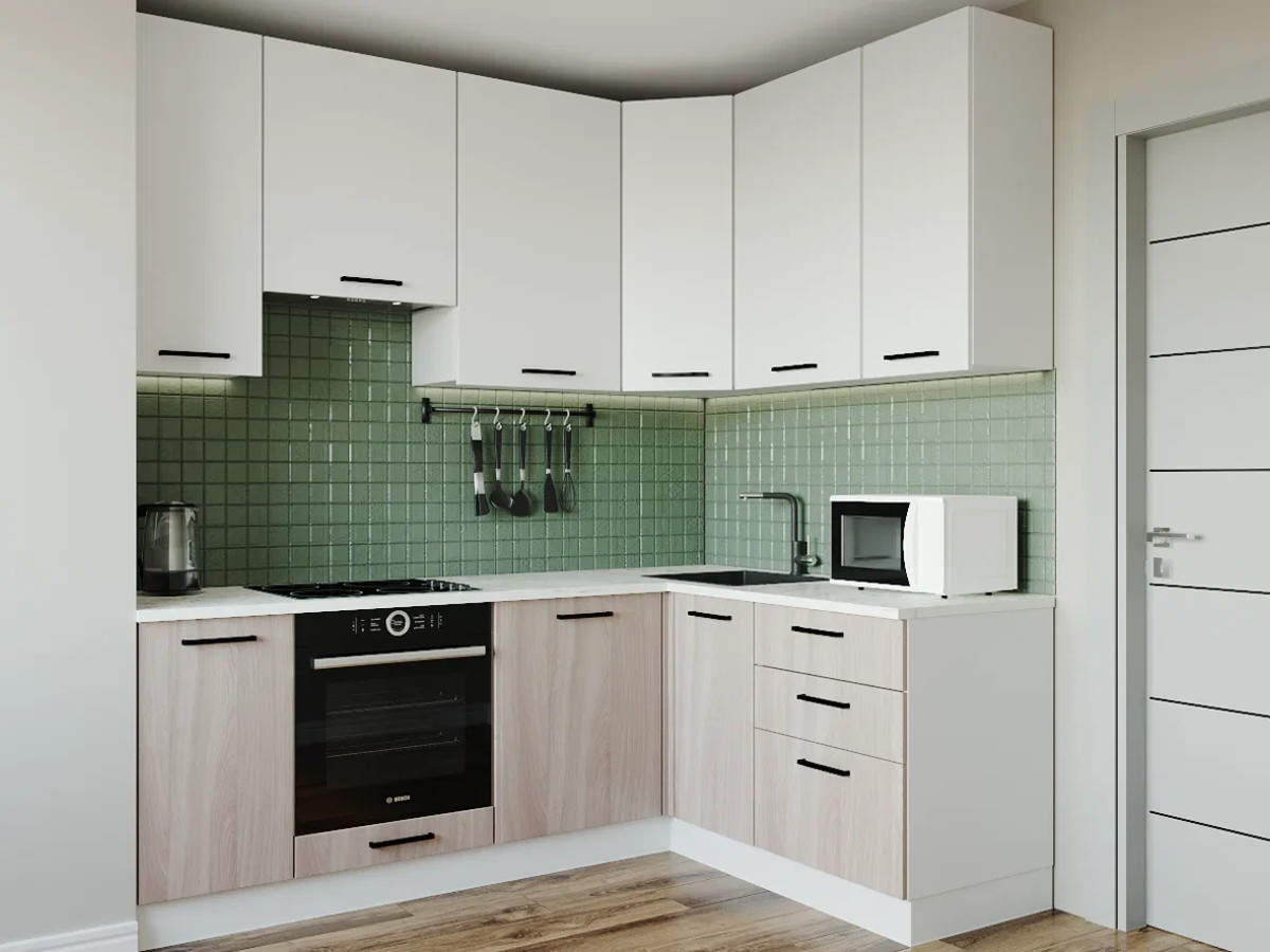 - Кухонный гарнитур Демо 2200х1600 (верх 950 мм) низ МДФ