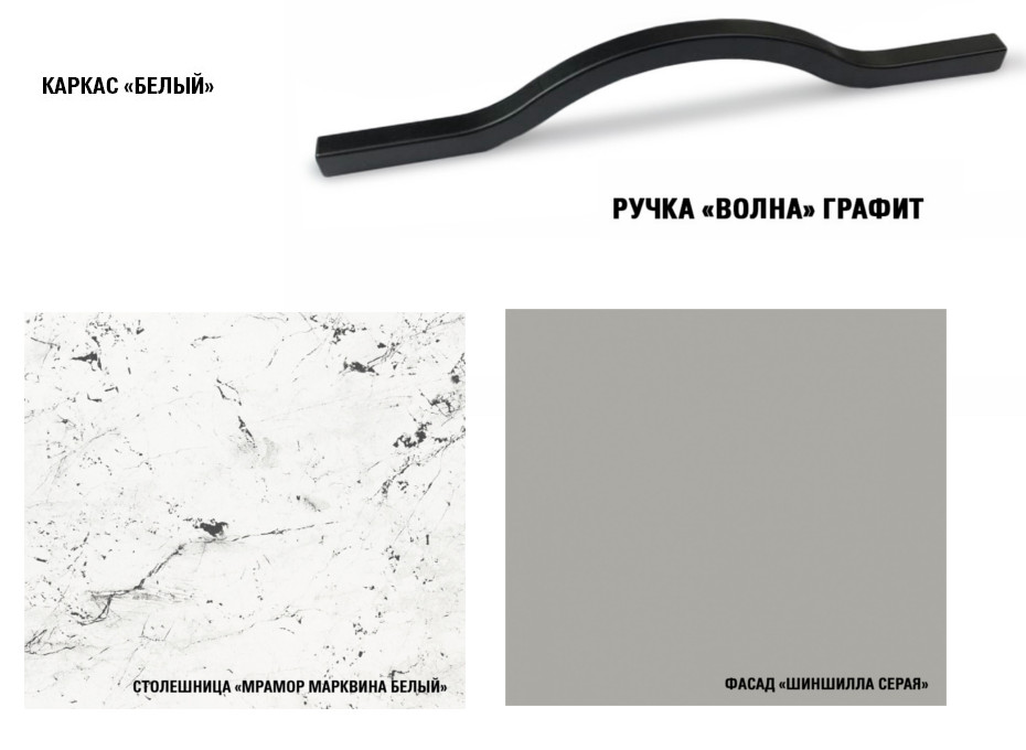 Мойка, смеситель, стеновая панель и посудосушитель в комплект гарнитура не входят.
