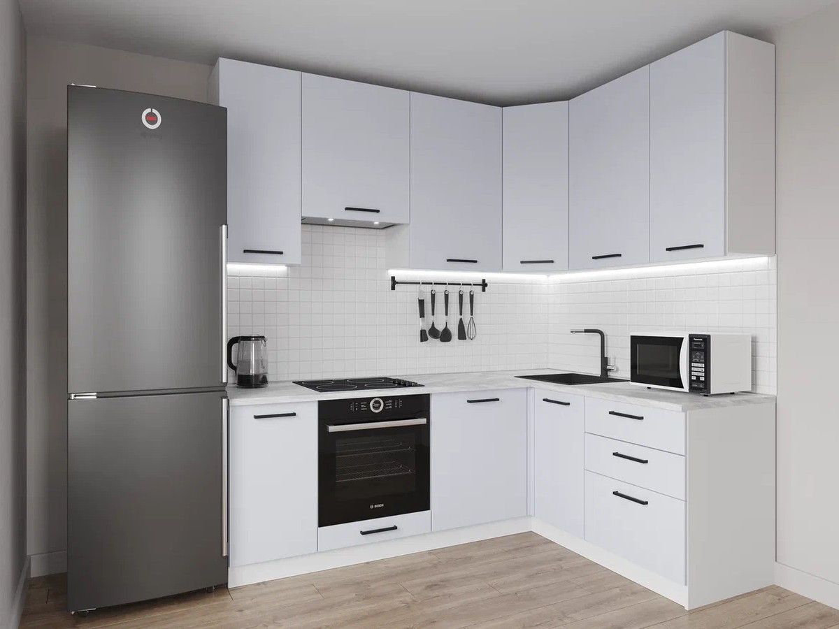 - Кухонный гарнитур Смоки 2200х1600 (верх 950 мм) МДФ