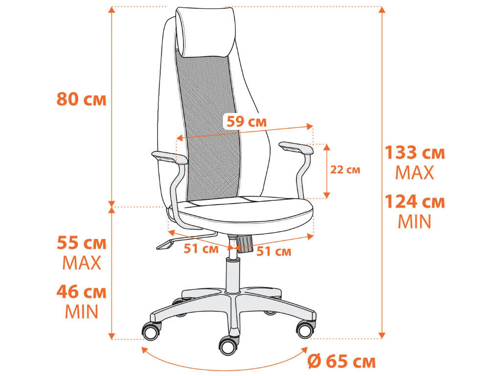 - Кресло оборудовано надежным газлифтом 3 класса с ходом 100 мм