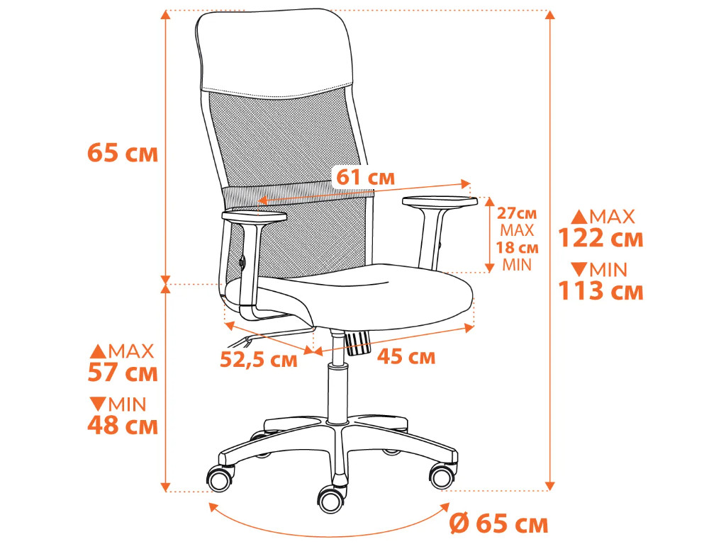 - Подлокотники Т-образные с регулировкой по высоте, накладка из текстурированного пластика