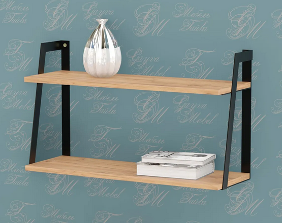 Полка металлическая ЛОФТ-2 Дуб крафт золотой-черный матовый