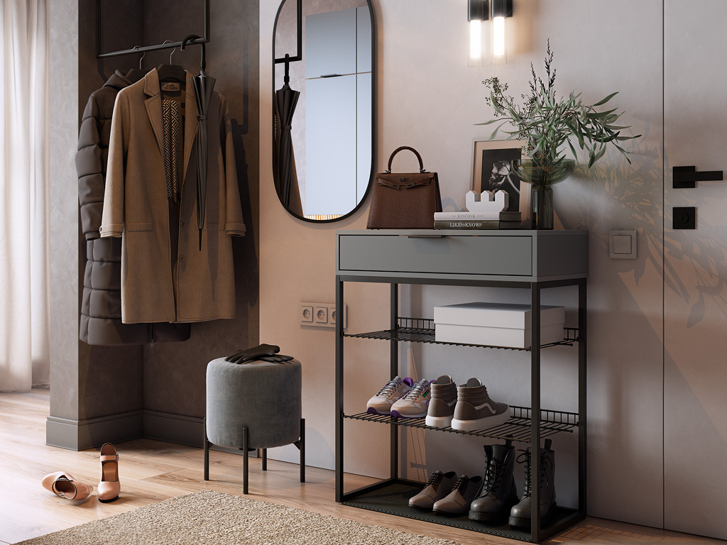 Модная консоль для обуви в стиле Лофт из металл  профиля, легкая.