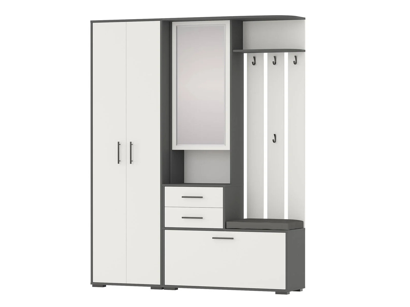 Прихожая Домино со шкафом Графит, Белый