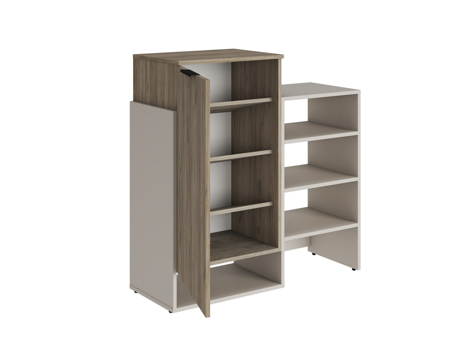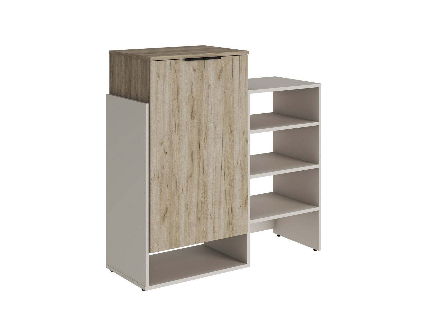 В закрытом «парящем» модуле 3 полки под обувь, разделяющие внутренний проем на 4 части.