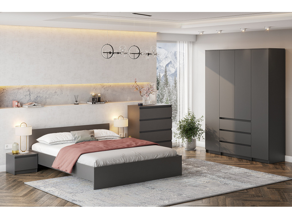 - Кровать 1600 Денвер Графит серый с настилом