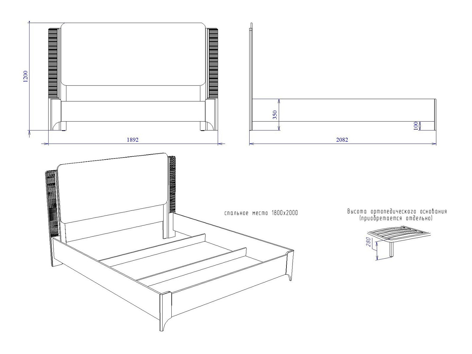 Спальное место: 1800*2000 мм