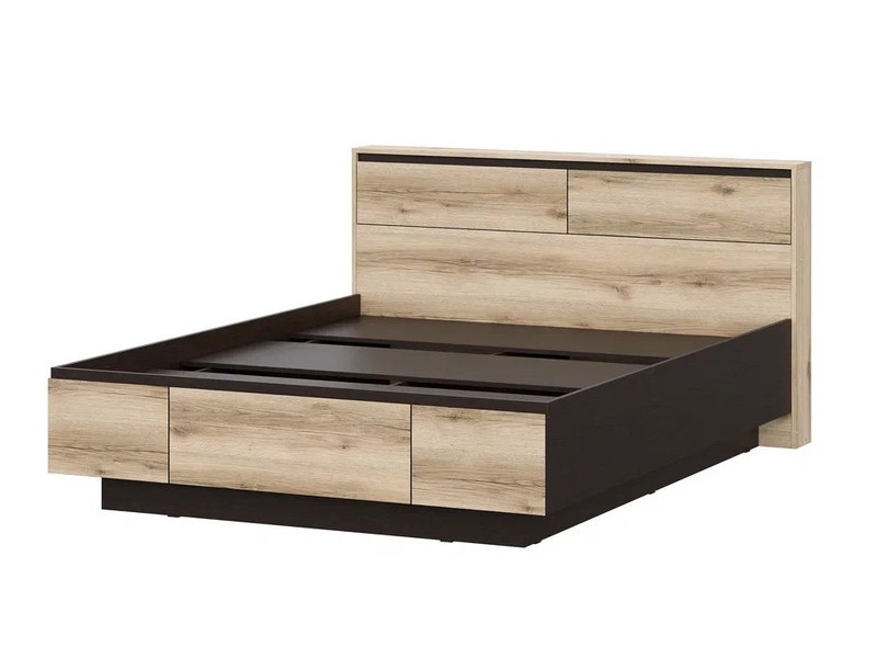 Массивное изголовье оборудовано двумя скрытыми ящикам с откидными створками для хранения необходимых в зоне сна предметов.