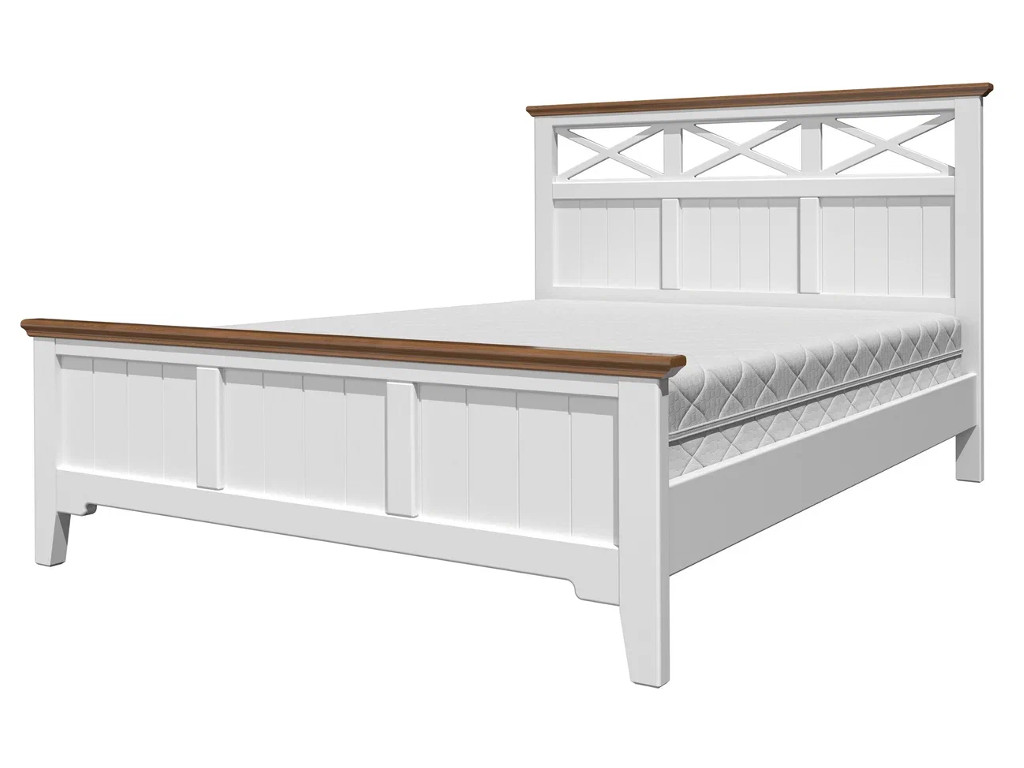 Кровать Грация-5 1400 Белый античный с карнизом Дуб коньяк