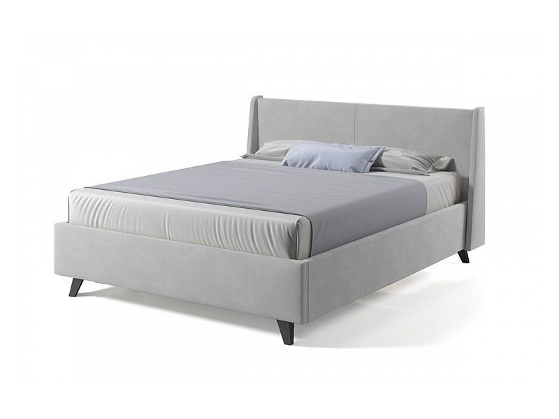 - Кровать Лорен с ПМ 1400х2000 мм микровелюр светло-серый