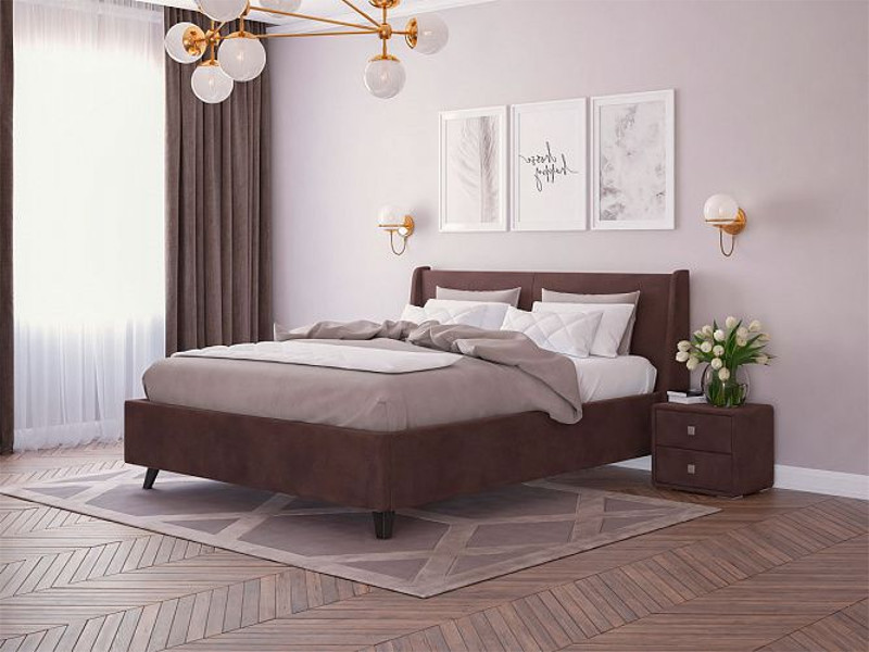 - Кровать Лорен с ПМ 1800х2000 мм микровелюр шоколад