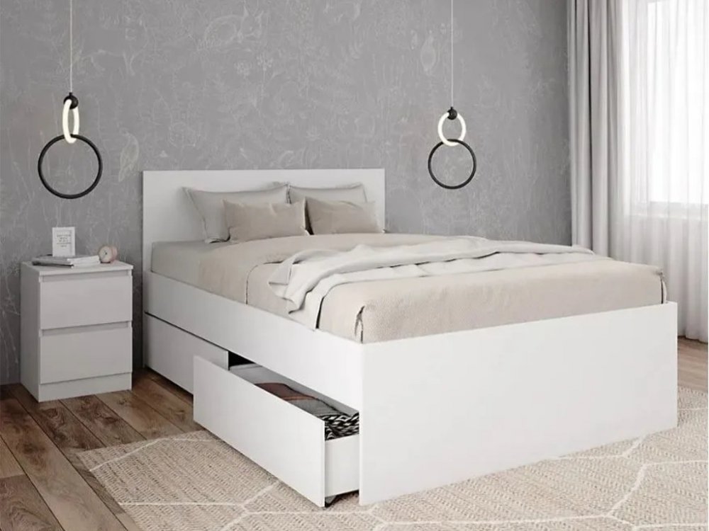 - Кровать Мори КРМЯ 1400.1/1 Белый с ящиками МЯ 995.2