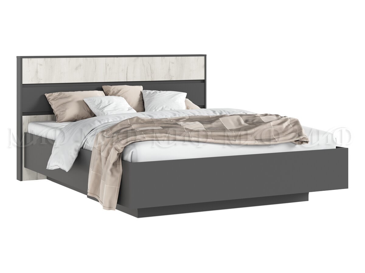 - Кровать парящая 1600 Роджина (ортопед металл) Дуб Крафт Белый/Графит