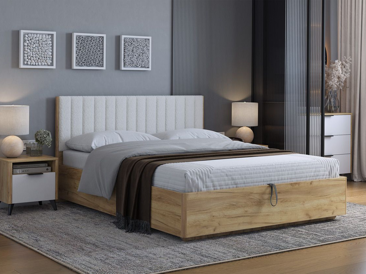 - Кровать с подъемным механизмом Юлия 160х200 см дуб крафт золотой