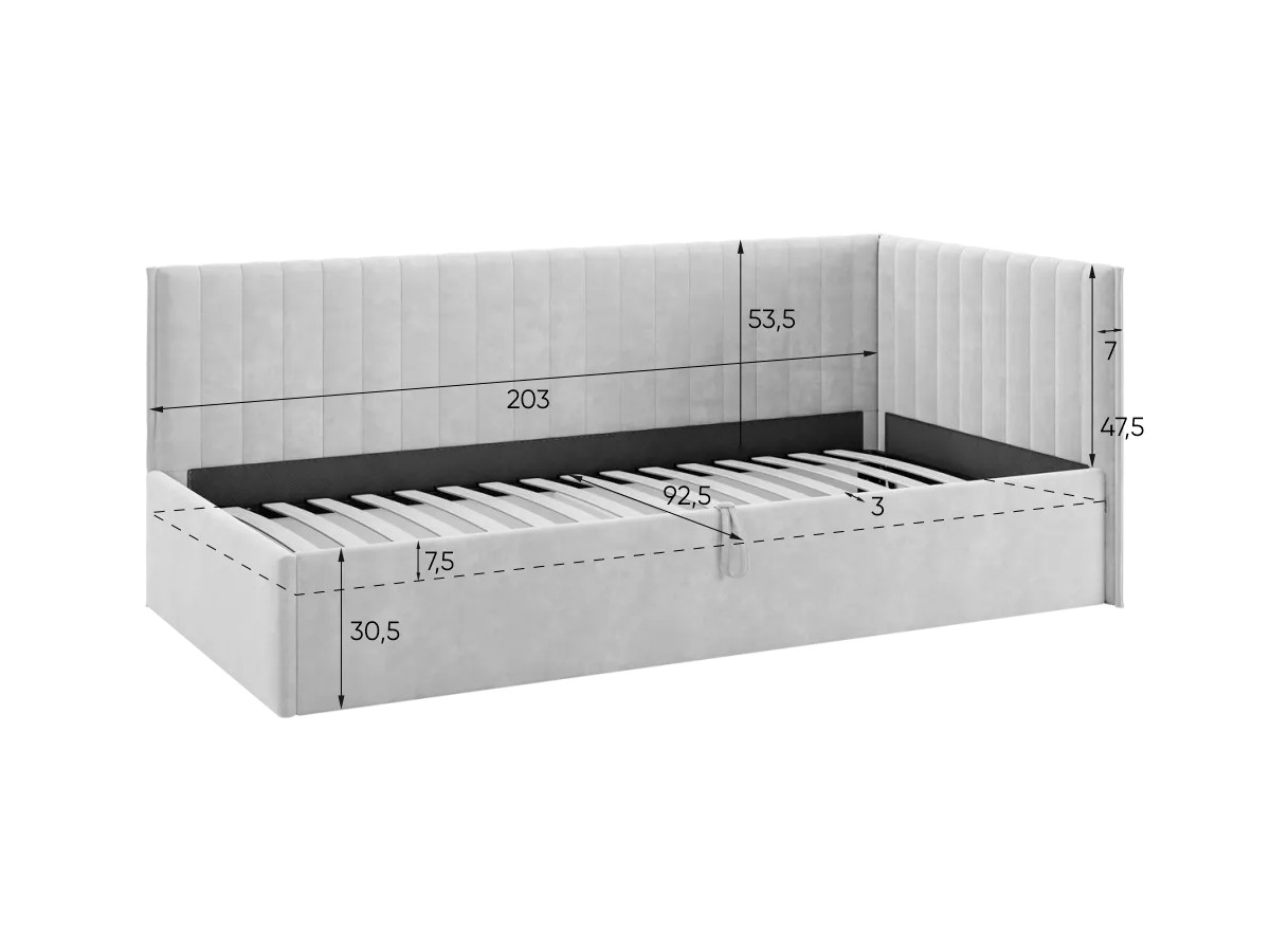 Дополнительно можно приобрести наматрасник в цвет обивки и мягкий ограничитель.
