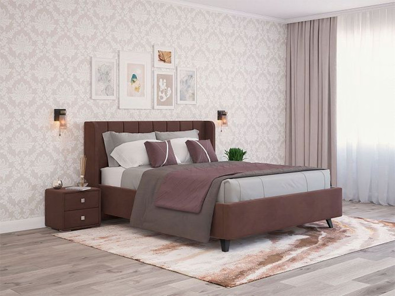 - Кровать Виола с ПМ 1200х2000 мм микровелюр шоколад