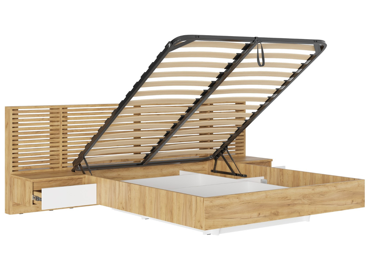 Важно! Тумба в количестве ДВУХ ЕДИНИЦ входит в состав спального комплекта и НЕ является самостоятельным элементом, имеет универсаньную сборку, при сборке крепится к Щитку и царге БОСТОН Кровати КР-001 с двух сторон.