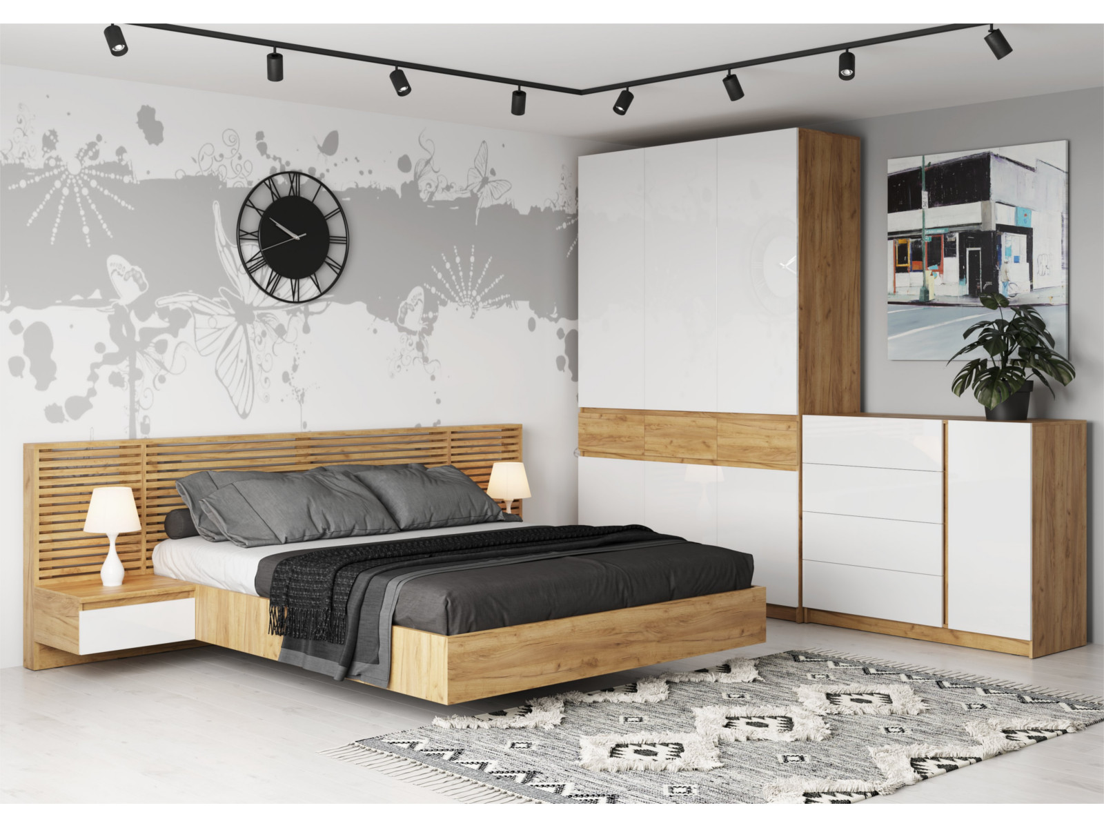 Спальня Ирис Браш Вайт/Дуб Крафт