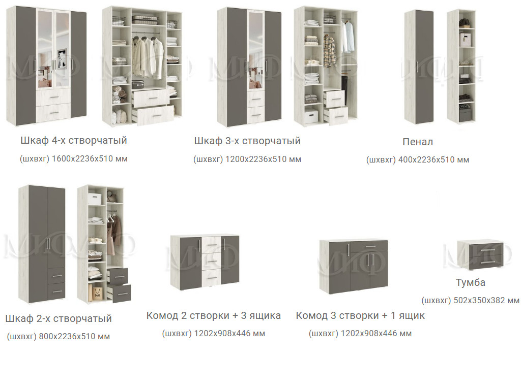 Цвет фасад/корпус: Графит/Дуб Крафт Белый