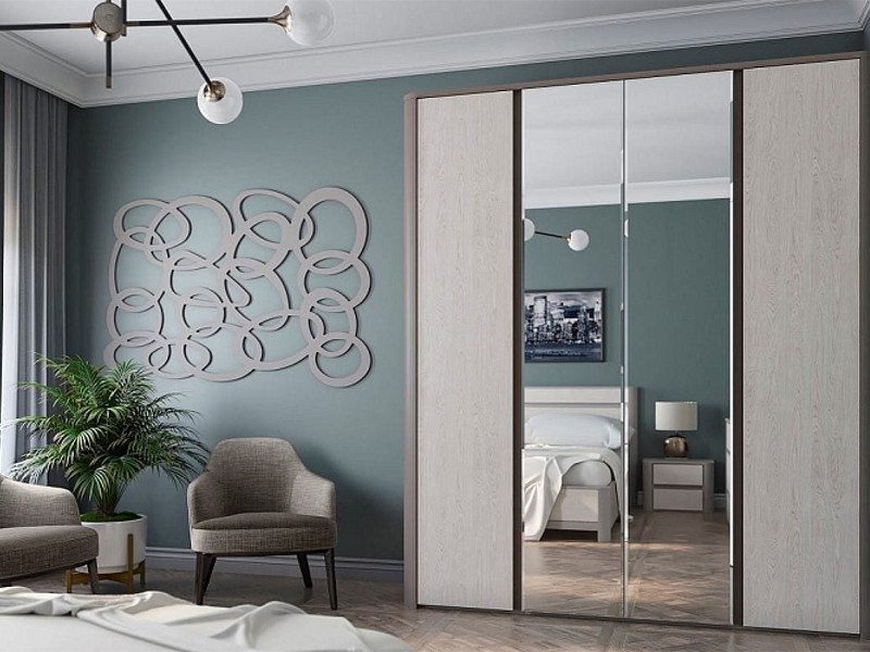 Цена за комплект: Тумбочка прикроватная (2 шт), Кровать с/м 2000*1400, Ортопедическое основание 1400*2000, Шкаф-купе 2-х дверный, Зеркало, Комод
