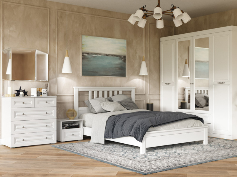 Цена за комплект: зеркало навесное,комод 5 ящиков, тумба прикроватная 1 ящик, шкаф для одежды ШР-4 , кровать двойная "Лаура" 1400, Комплектующие на кровать с ламелями 1400 мм