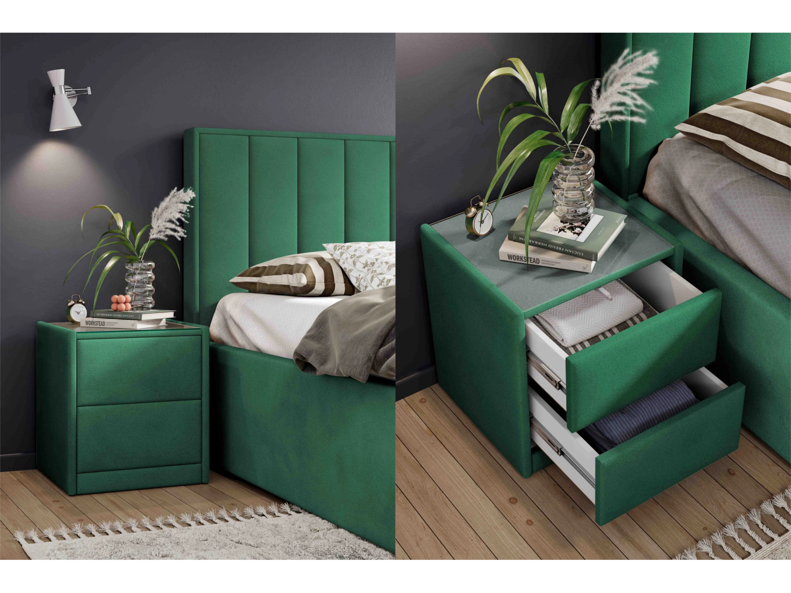 Тумба мягкая Аризона Вариант 1 Мора зеленый